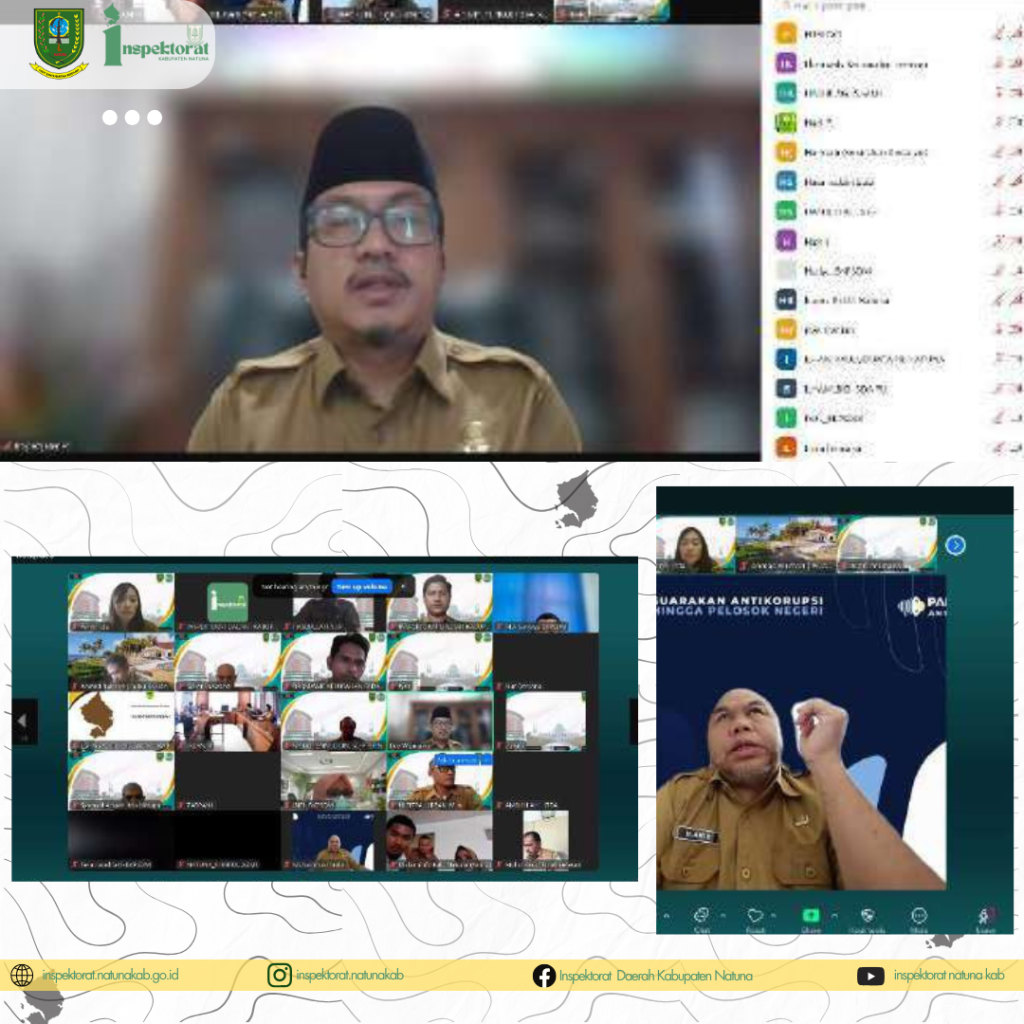 Ranai, 5 Mei 2025 – Pemerintah Kabupaten Natuna melalui Inspektorat Daerah menyelenggarakan kegiatan Sosialisasi Antikorupsi dan Tata Cara Pengaduan yang dilaksanakan serentak secara daring melalui video conference. Kegiatan ini merupakan tindak lanjut dari program Monitoring, Controlling, Surveillance for Prevention (MCSP) Komisi Pemberantasan Korupsi (KPK) Tahun 2025 yang diarahkan untuk memperkuat kesadaran Aparatur Sipil Negara (ASN) tentang bahaya korupsi, pentingnya integritas, serta upaya membangun budaya antikorupsi di lingkungan birokrasi daerah.