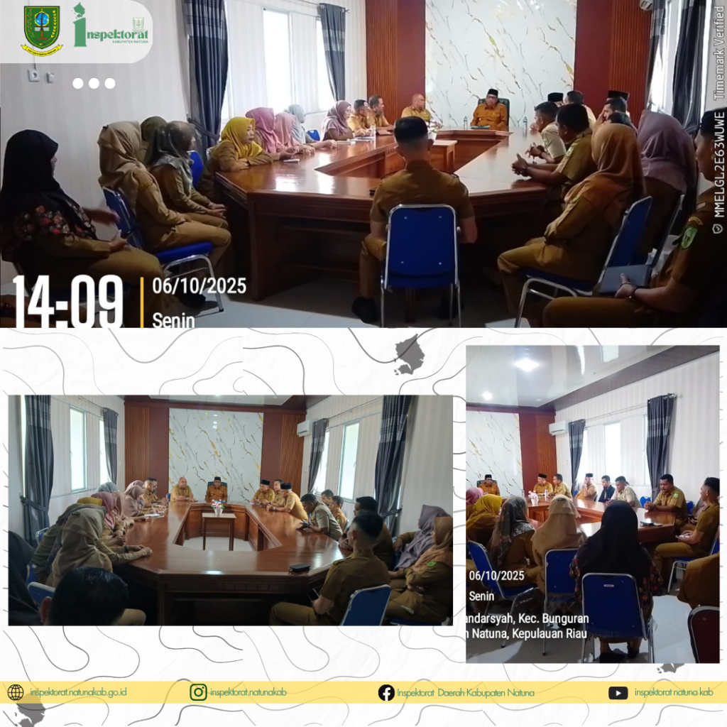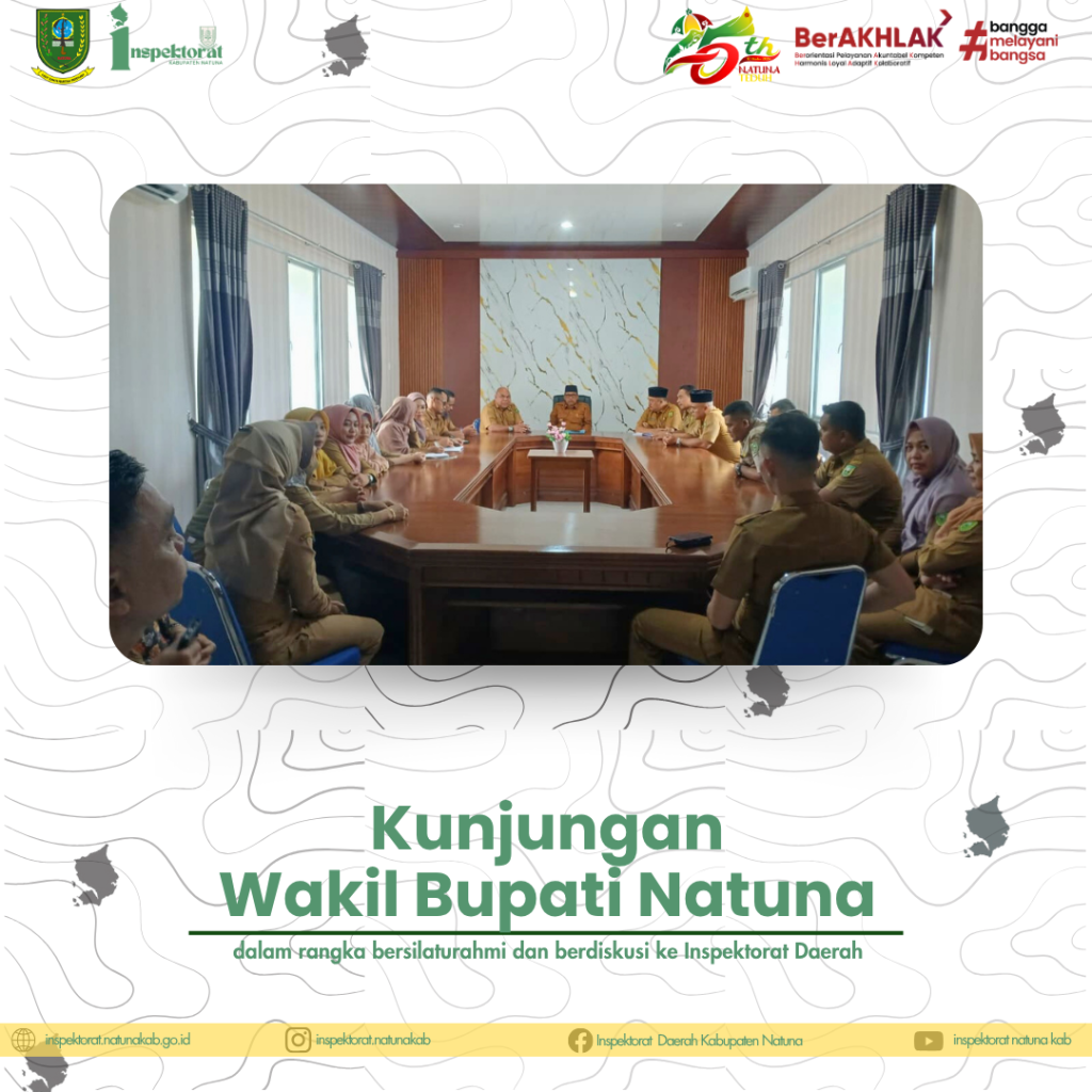 Natuna, 6 Oktober 2025 — Wakil Bupati Natuna Jarmin Sidik, S.E. melakukan kunjungan silaturahmi ke Inspektorat Daerah Kabupaten Natuna di Jl. Batu Sisir, Bandarsyah, Bunguran Timur. Pertemuan berlangsung di ruang rapat Inspektorat dalam suasana santai dan terbuka, dihadiri Inspektur beserta jajaran pejabat struktural, auditor, dan staf.